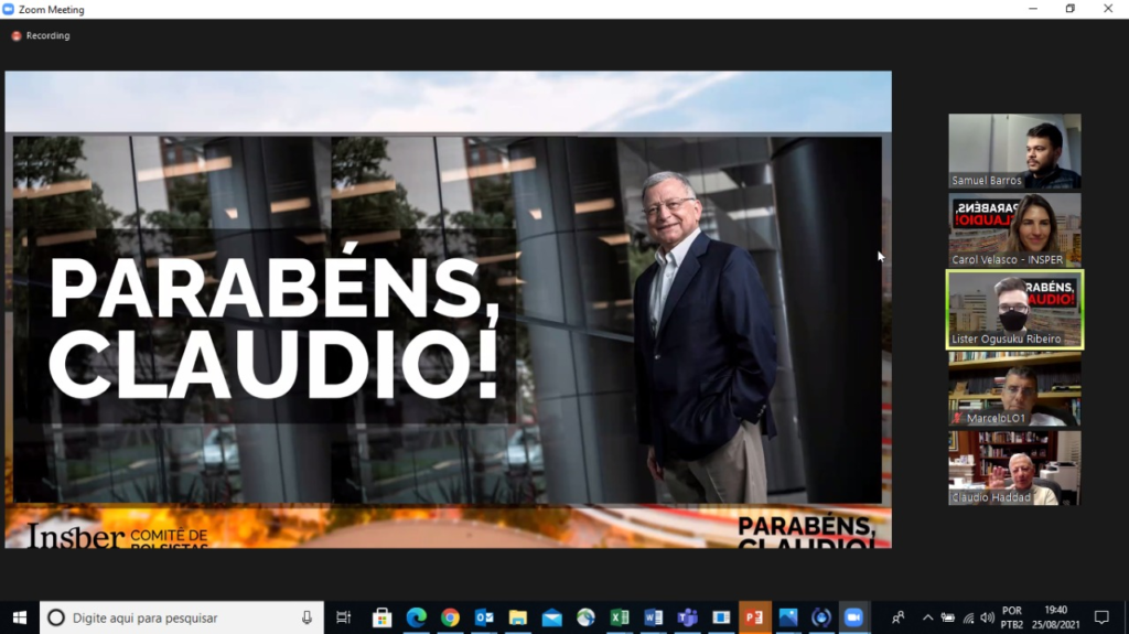 No mês seguinte, foi de responsabilidade do Comitê a elaboração de uma homenagem ao fundador do Insper e precursor do Programa de Bolsas, Claudio Haddad. A homenagem foi conduzida por Lister Ogusuku Ribeiro e Samuel Barros no dia 25 de agosto de 2021.